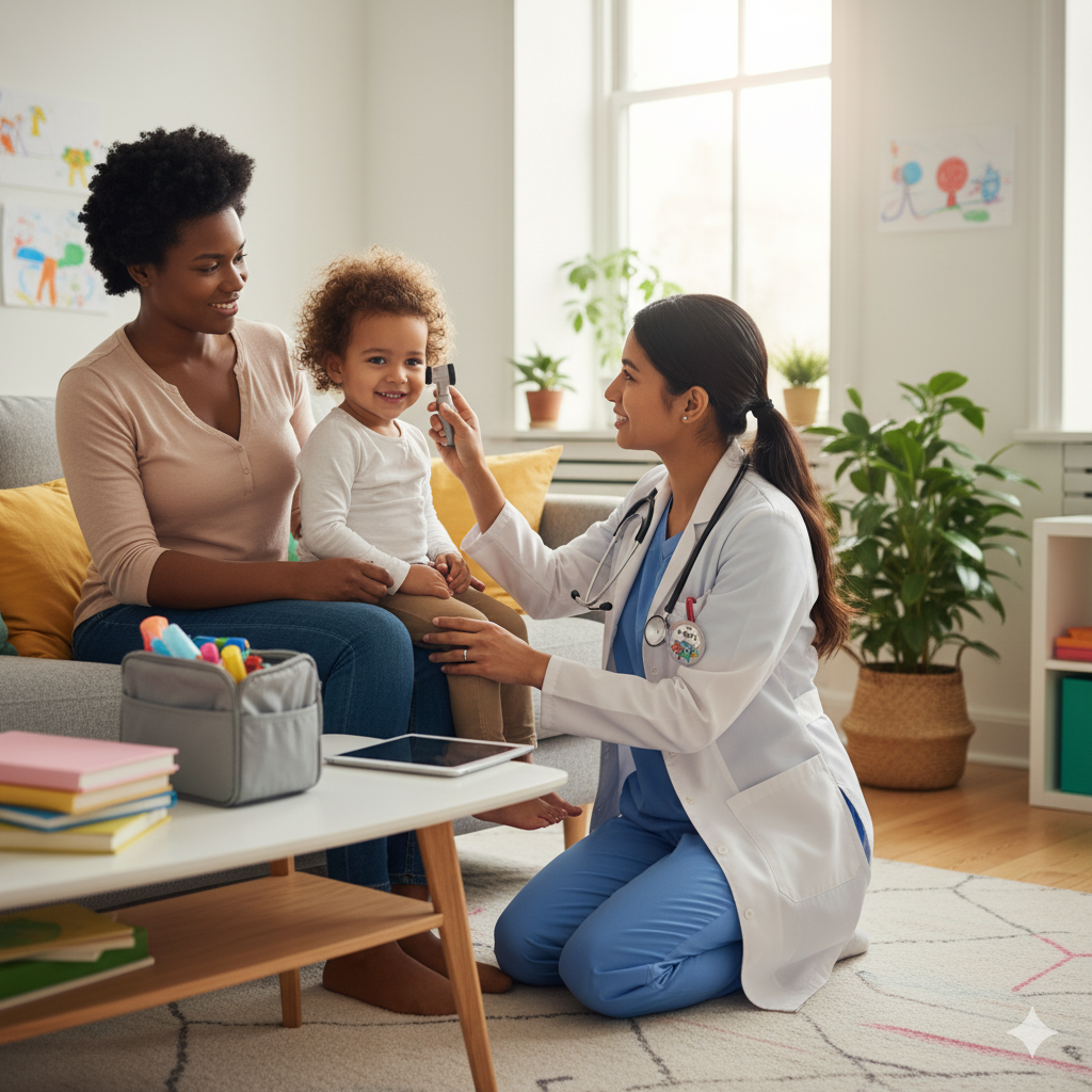 Expert Pediatrician at Home services provide safe, high-quality medical care for your child, from newborns to adolescents. Services include routine checkups, vaccinations, acute illness management (e.g., fever, cold), and developmental assessments in a comforting, familiar environment.
